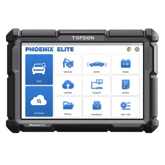 The Phoenix Elite is a professional-grade diagnostic scanner that offers OE-level capabilities. With a 10.1 inches LCD screen, 4-Core 2.0 GHz Processor, and Android 10 operating system, this tool provides fast and precise diagnosing capabilities. Its topology feature lets technicians have a clear picture of the automobile's sensor systems and quickly find communication issues or identify trouble codes. The Elite offers cloud-based programming and online coding for various makes. This tool can perform active tests, coding, initializations, memory resets, and much more. Offering unparalleled coverage and an updated VCI, the Phoenix Elite is a must-have device to work on the most modern cars.