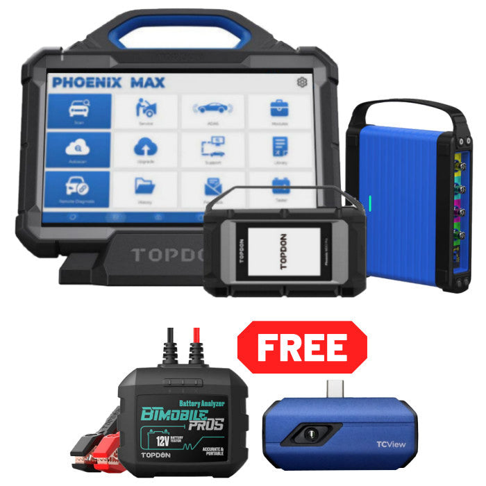 The Phoenix Max is TOPDON's newest cutting-edge automotive diagnostic scanner. With a 13.3" screen, this all-in-one tool offers a wide array of functionalities that will expand any technicians' capacity to complete even more jobs. The Phoenix Max includes a 4-channel oscilloscope, ADAS compatibility, and Topology Mapping that shows all car systems in one view. It's updated MDCI (Modular Diagnostics & Communication Interface) includes the latest protocols: J2534, CanFD, DolP, D-PDU, and RP1210; allowing professionals to perform more complex repairs on various automotive and heavy-duty vehicles.