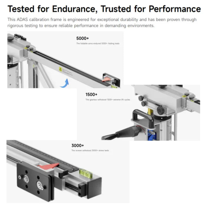 This ADAS calibration frame is engineered for exceptional durability and has been proven through rigorous testing to ensure reliable performance in demanding environments.