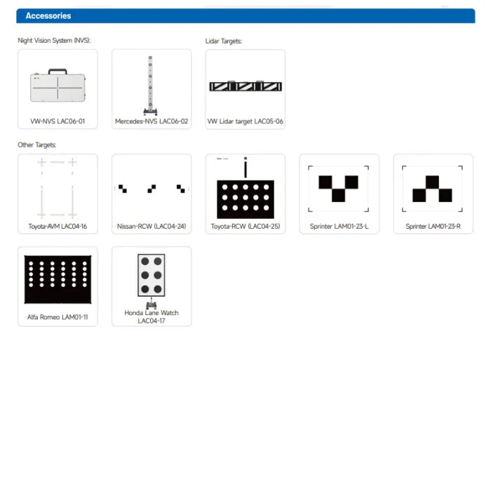 This versatile ADAS calibration tool supports a wide range of safety and driver assistance systems, including Lane Departure Warning, Adaptive Cruise Control, Blind Spot Detection, Around View Monitor, Night Vision, and Rear Collision Warning. Its broad compatibility makes it an essential tool for modern vehicle diagnostics and calibration, promoting safety on the road.