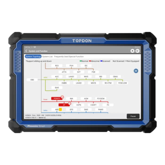The Phoenix Smart Utilizes Topology mapping, displaying the entire vehicle system. Raw data is transformed into clear graphics, so technicians can see the entire status of the car system and get right to the vehicle's issues.