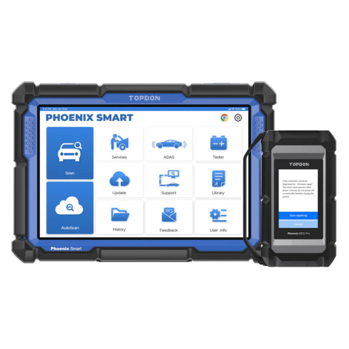 The Phoenix Smart is part of TOPDON's new generation of intelligent diagnostic tools. Equipped with quad-core processors and a 10.1 inches HD touch screen, this tool allows you to diagnose fault codes with one click. Its 12600mAh battery can work all day without fear of losing power. The Phoenix Smart also supports Cloud-Based Programming for over 13 car brands and includes 2 years of free software upgrades. Combined with the MDCI Pro, this scanner gives you unprecedented coverage, intelligent diagnoses, and a wide array of maintenance functions.