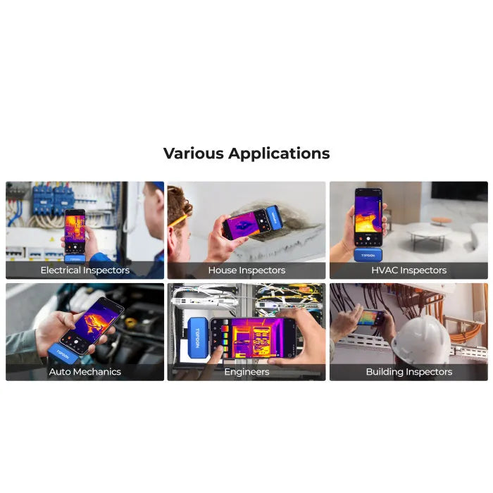The TOPDON TC001 Plus is a portable camera that turns your Android smartphone or Windows laptop into a powerful infrared thermal imager. Experience exceptional visuals with TC001 Plus, a dual-lens thermal imager designed to unveil hidden details, so image contours of objects such as circuits and pipes can be easily recognized. Sporting an impressive 256 x 192 IR resolution and an additional 1MP visible light lens, paired with the cutting-edge image fusion technology, TC001 Plus captures targets in original colors for overall precision. Compact and portable, it is ideal for home inspectors, HVAC technicians, electricians, automotive technicians, and even farmers looking to protect crops and livestock.The TCView Plus is perfect for automotive technicians performing cylinder inspections. With many real-world applications, it can be used by home inspectors inspecting insulation in walls, plumbers looking for water leaks, HVAC technicians looking for refrigerant or air leaks, electricians looking for loose connections or excessive loads, and even farmers looking to protect crops and livestock.