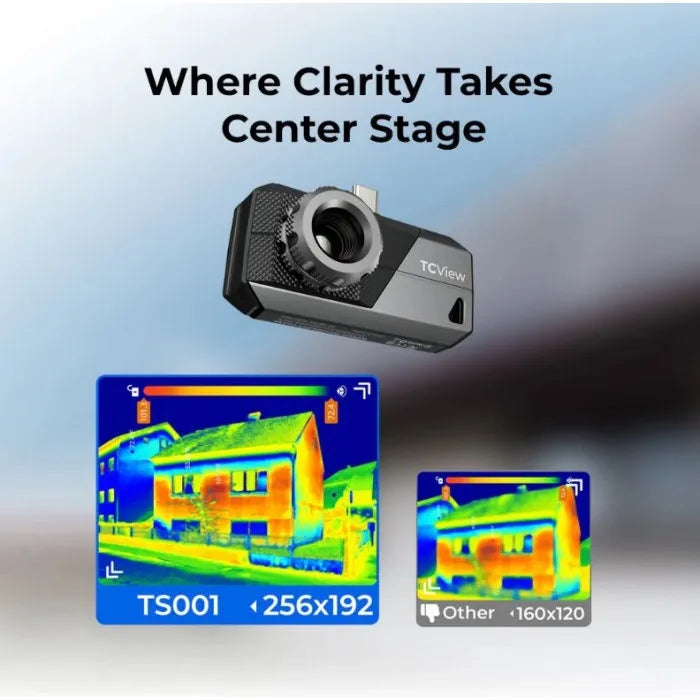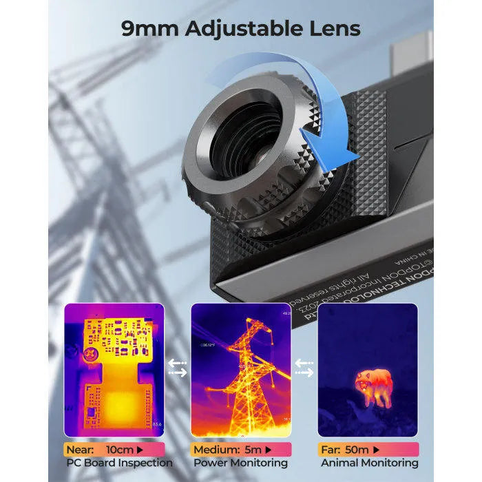 Experience unparalleled clarity from near to far with the TS001, a long-focus Android thermal imager designed to capture sharp images, even for objects as close as PCB boards. With a high-resolution 256x192 pixels infrared sensor and a smooth 25Hz frame rate, every detail is captured with precision. The TS001's adjustable 9mm lens covers distances from 0.1 to 500 meters, catering to various applications including building inspections, animal observation, auto repair, and PCB inspection. Equipped with measurement and observation modes, it provides accurate temperature readings and intuitive insights into heat distribution. Perfect for professionals such as home inspectors, automotive technicians, and electricians, the TS001 empowers you to detect, diagnose, and resolve issues with unparalleled clarity and efficiency.