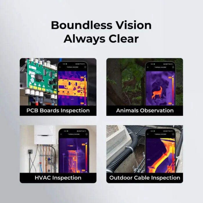From up close to afar, indoors to outdoors, the TS001 Thermal Imaging Camera delivers unmatched clarity. Whether you're inspecting PCB boards in the lab or monitoring boilers from a distance, conducting HVAC checks indoors, or outdoor cable inspection, TS001 has got you covered.