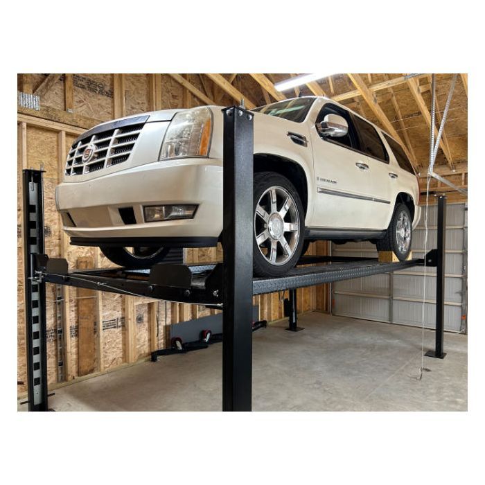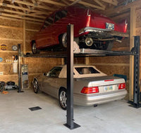 "Here are some pictures of the lift installed and in use, constructed, moved and I've placed the lift in use. It took me and my sons about 5 hours to construct. I have wanted to have something that I can work on vehicles in a raised position and store a project vehicle for years and this lift is great for those uses. Thanks Again for all your help."