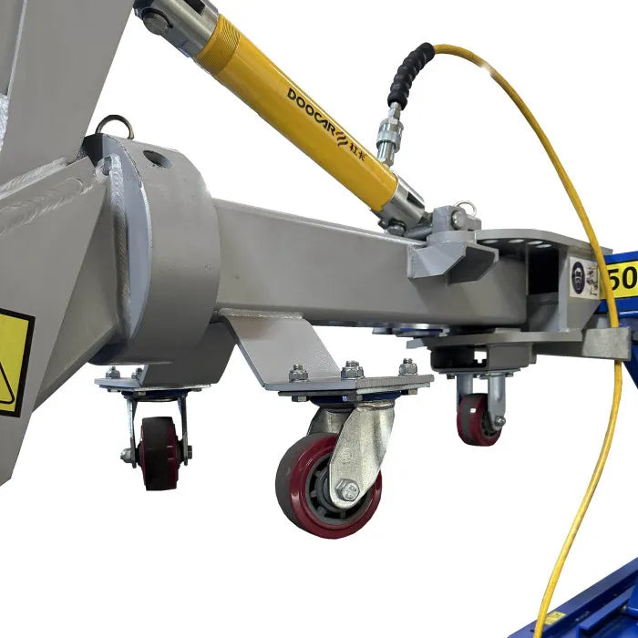 The iDEAL FR-55 Scissor Lift & Frame Rack is unique, high quality, compact frame straightening machine with the versatility of an automotive lift, designed to service full-frame or uni-body type vehicles with its 5,500 lbs. lifting capacity. It incorporates a 10 ton 'multi-angle/adjustable height' pull tower with 360 degree pulling capability, along with adjustable height. Clamping assemblies and universal positioning swivel arms & lift pads. The FR-55 also comes standard with pull chain with hook and wheel stands.The FR-55 Frame Machine offers universal positioning swivel lifting arms for full service and adjustable height pinch weld clamp assemblies and lift pads. It has a 5,500 lbs. lifting capacity with 4 wheel support benches to simplify clamp set-up. Portable console cabinet with remote "hand held" pendant for single point operation.