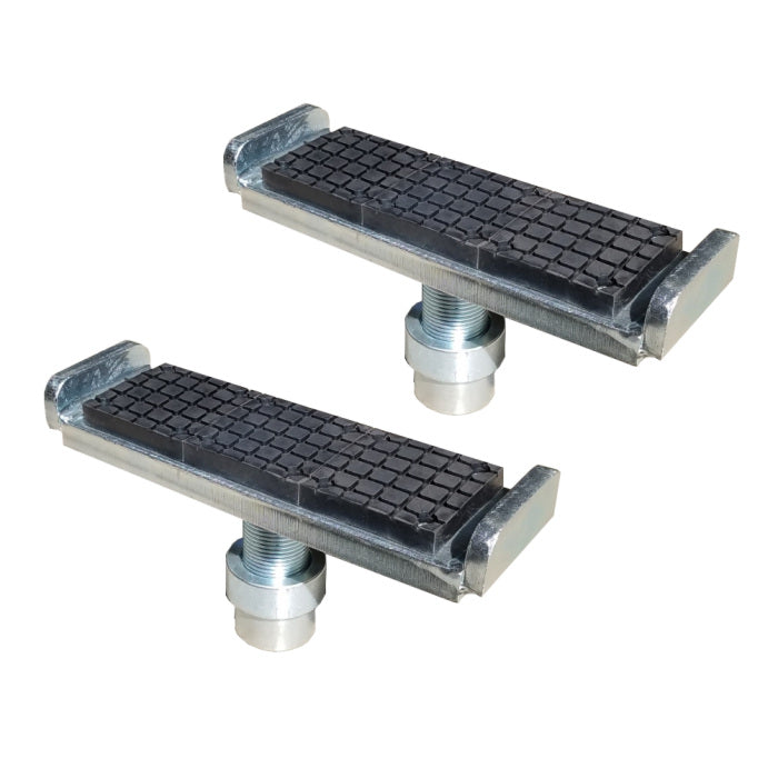 The Tuxedo GM Cradle Adaptors are designed to better accommodate the wider front frame design for the 2019 GM Silverado and Sierra Light Duty Trucks. The Tuxedo GM Cradle Adaptors includes adjustable 'spin-up' height feature, durable rubber contact pads and designed to work with the lift's standard height adapters.