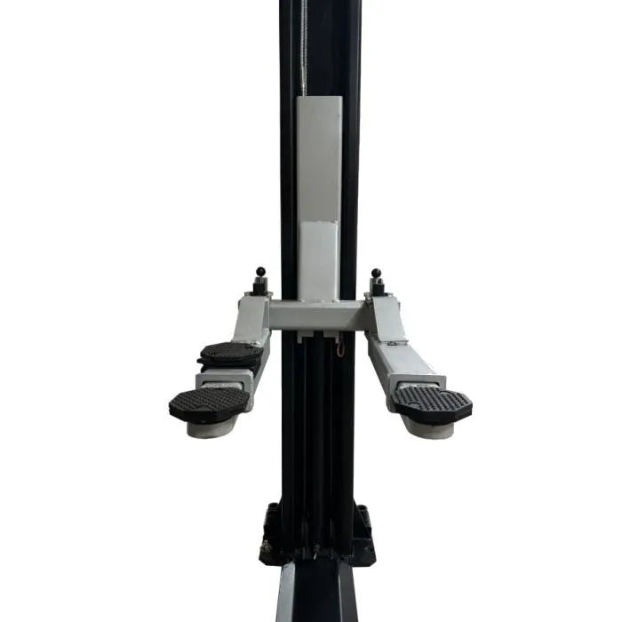 The Tuxedo TP9KF Symmetric Floor Plate Two Post Lift is an economy designed open top / floor plate vehicle lift with standard lift features including: symmetrical swing arms, low profile 4” lifting pads, stackable height adaptors, saddle pad adaptors and dual point carriage lock releases. The one piece column combined with reliable chain drive cylinders makes it the perfect service lift for passenger cars, light duty trucks & most SUVs. The automatic arm restraints and durable powder-coat finish provide an economically priced lift with all the features, all for a great value!