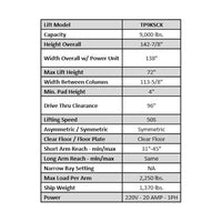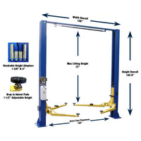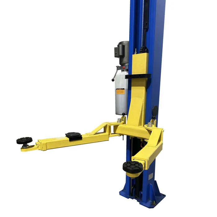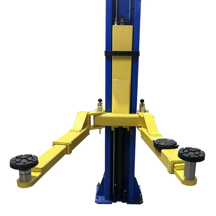 NEW 9K Series Two Post Lifts have been redesigned making one of best values even better. New standard features such as: single piece column construction, internal hose routing, rubber door guards and overhead shut-off bar makes this lift safe, sturdy & reliable . You don't have to sacrifice quality for an affordable lift. So many manufacturers don't even offer a symmetric 2 post lift anymore. This lift was made to accommodate all those auto repair shop owners out there who demanded a quality symmetric hoist option for their garage.