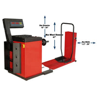The Tuxedo WB-448 Heavy-Duty Truck Wheel Balancer is a high performance machine. Featuring a standard back-saving pneumatic wheel lift and a manual stop foot brake, this self-calibrating and self-diagnosing wheel balancer quickly and accurately balances a full range of wheels up to 298 lbs. Car and truck cones come standard. A great addition to any truck maintenance shop.Features & Specs