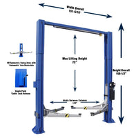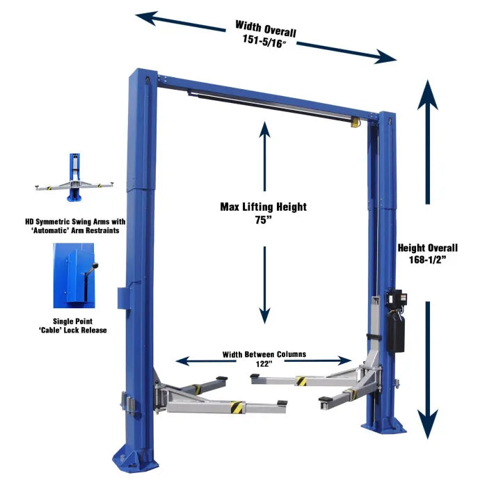 ASEplatinum offers a wide variety of garage equipment, but they are most notable for their automotive lifts. This model is a perfect example of why they are rapidly growing into one of the fastest up-and-coming names in lifts. Over a decade of history tells us that these lifts are ready for prime time. Professional auto shops have been using and abusing these lifts for years and are raving about them. They offer professional features and quality along with a reliable time tested design, at an affordable price. If you're looking for a true commercial quality hoist at a reasonable price, this is it. Durable hydraulic cylinders in each column work in a direct drive lifting system for maximum efficiency. High strength equalizer cables with commercial quality pulleys make sure that both sides stay synchronized. You can find cheaper models out there, but you won't find a better model at anywhere near this price. Includes all mounting hardware and truck extensions / adapters.