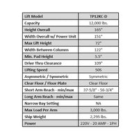 ASEplatinum TP12KC-D Heavy-Duty Clear Floor Two Post Lift