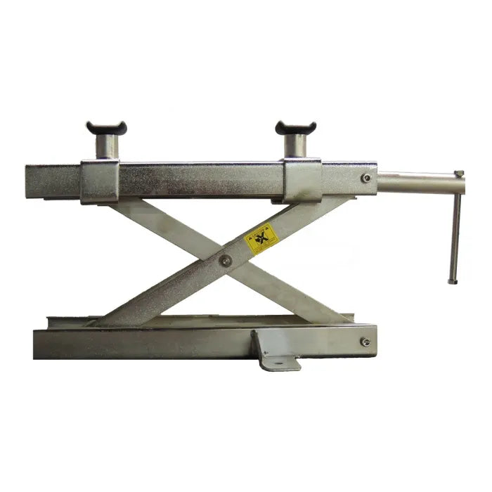 If you have a motorcycle or ATV lift, and you want to raise the rear wheel so you can gain access to it to remove it, or to free-wheel it, then you'll need a scissor jack like this one. It can be placed on the lift table surface and underneath the frame of the bike to raise it by the frame so you can free-wheel the rear wheel, or remove it for servicing various components. Solid steel construction suitable for commercial use. This is not the kind you'll find in some bargain mass mailing catalog.