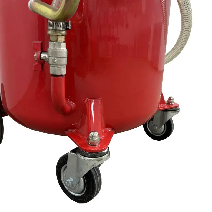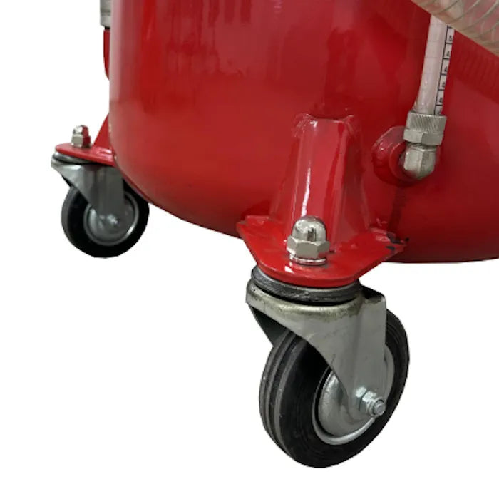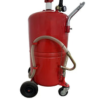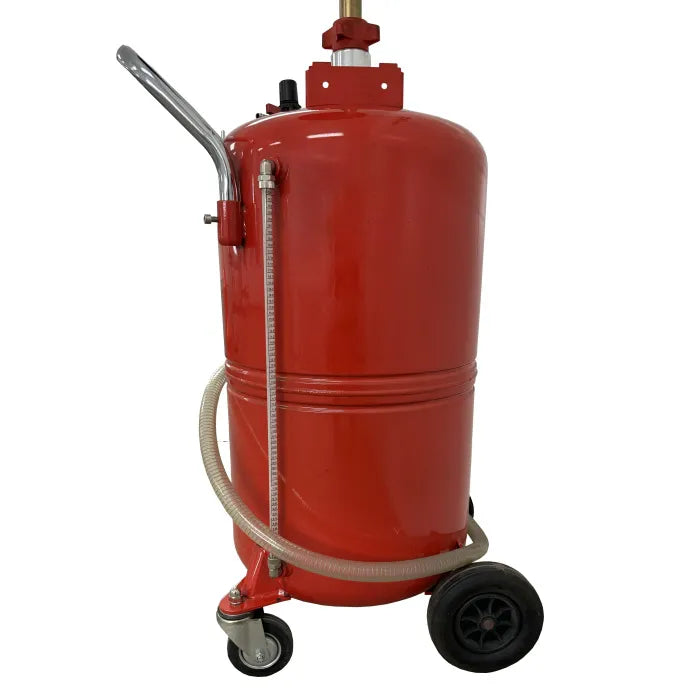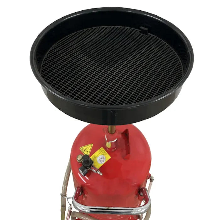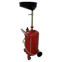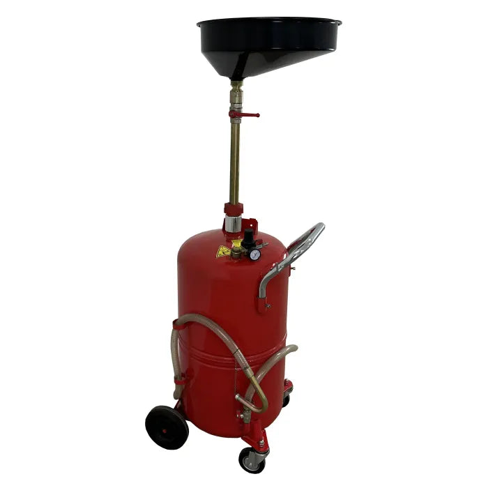The ASEplatinum 24G-SE is a Premium Upright Portable Oil Drains with 24 Gallon Fluid Capacity and 'Pneumatic' Self-Extraction. Features include large funnel, adjustable height, 7' long hose, storage tray, (2) swivel casters and (2) fixed wheels, sight tube with air pressure gauge and regulator for pneumatic self-extraction control.
